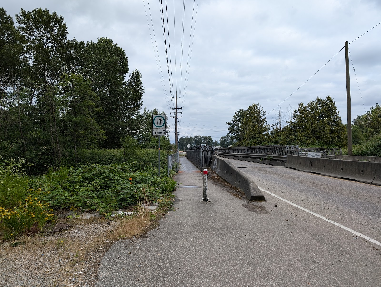 Facing southbound at the Braid St bridge over the Brunette River on the United Blvd bike route