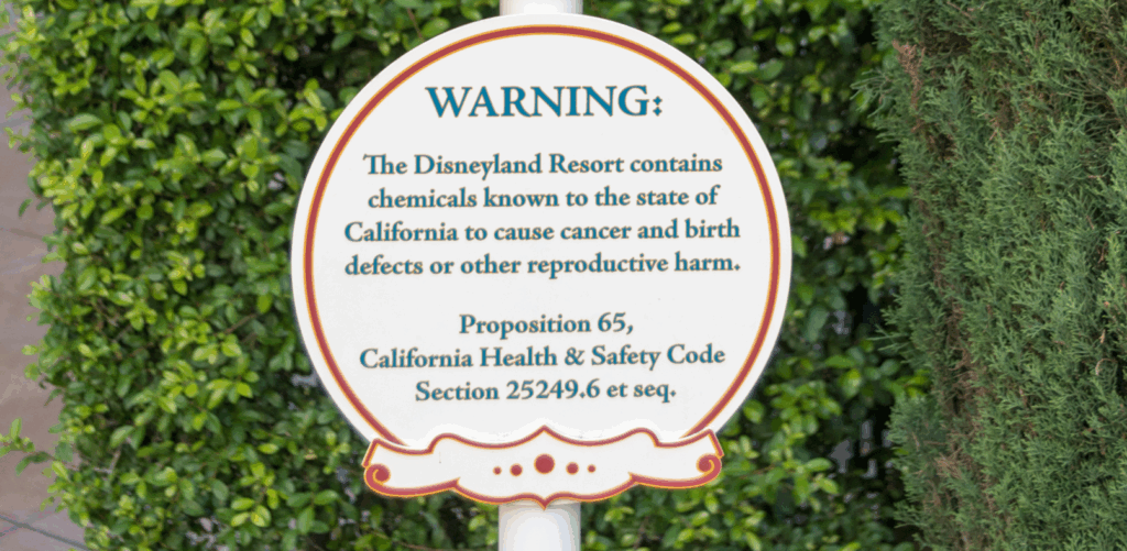 A useless Proposition 65 warning at Disneyland in Anaheim, California cautioning against the vague presence of chemicals somewhere in the resort (Patrick Pelletier via Wikimedia Commons)
