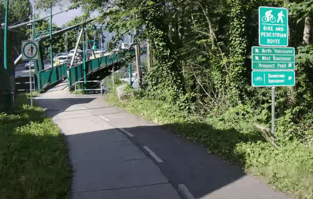 Facing northbound at the foot of the Lions Gate Bridge bike route (via Kevin Matthews’ bike route map)
